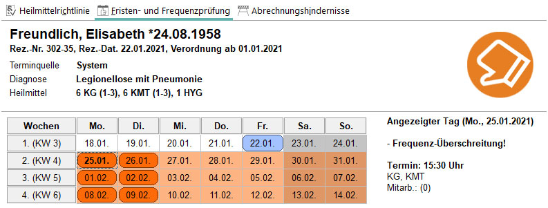THEORG meldet eine Frequenzüberschreitung, obwohl ein primäres und ein ergänzendes Heilmittel oder gar Hausbesuch verordnet ist?