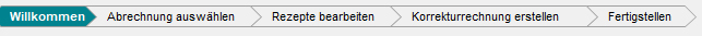 Im nächsten Schritt finden Sie die drei Anwendungsfälle. Ein Assistent leitet Sie stets durch alle Schritte. Sollte eine Korrektur innerhalb des Rezeptes nötig sein, kann diese direkt über das Korrekturverfahren vorgenommen werden.