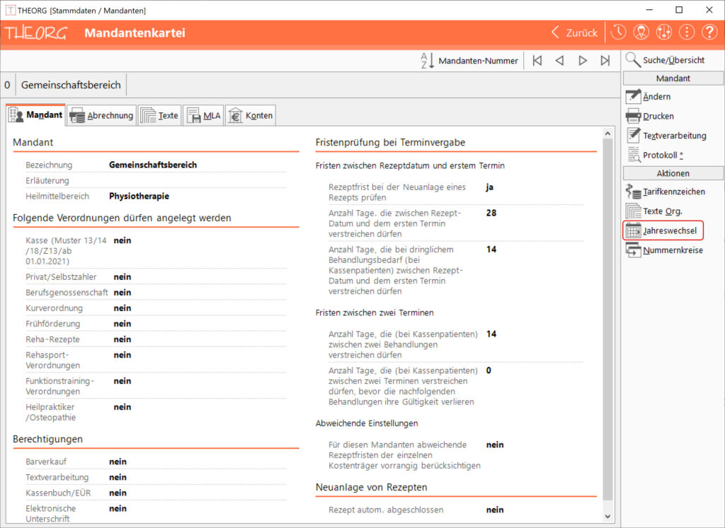 Meldet sich ein Nutzer mit den entsprechenden Rechten an, öffnet sich der Jahreswechsel-Assistent automatisch nach Programmstart. Die Vorbereitungen können dann sofort oder zu einem späteren Zeitpunkt bis Jahresende vorgenommen werden. Hierbei wird nichts direkt verändert, sondern lediglich für das nächste Jahr vorbereitet.